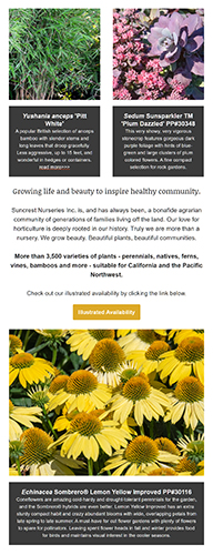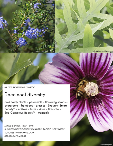 After graduating from CSU Monterey Bay in 2017, I began interning in the production department at Suncrest Nurseries for a new line of plants that launched in 2018. However, I wore many different “hats” once hired full-time. I also maintained records for Suncrest’s line of organic and Biodynamic® certified plants and worked on various marketing projects involving photography and desktop publishing software. Here is a small portfolio of projects I’ve worked on that also showcase my photography.
